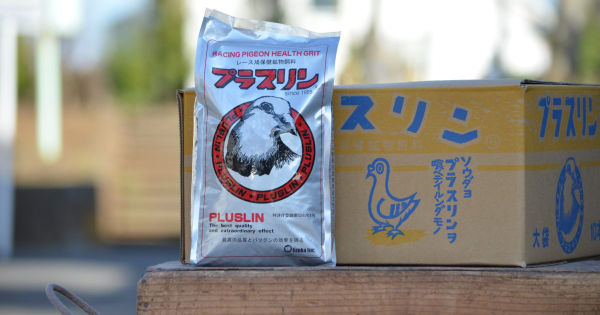 「プラスリン」は、1955年発売のレース鳩向けに開発された鉱物飼料です。